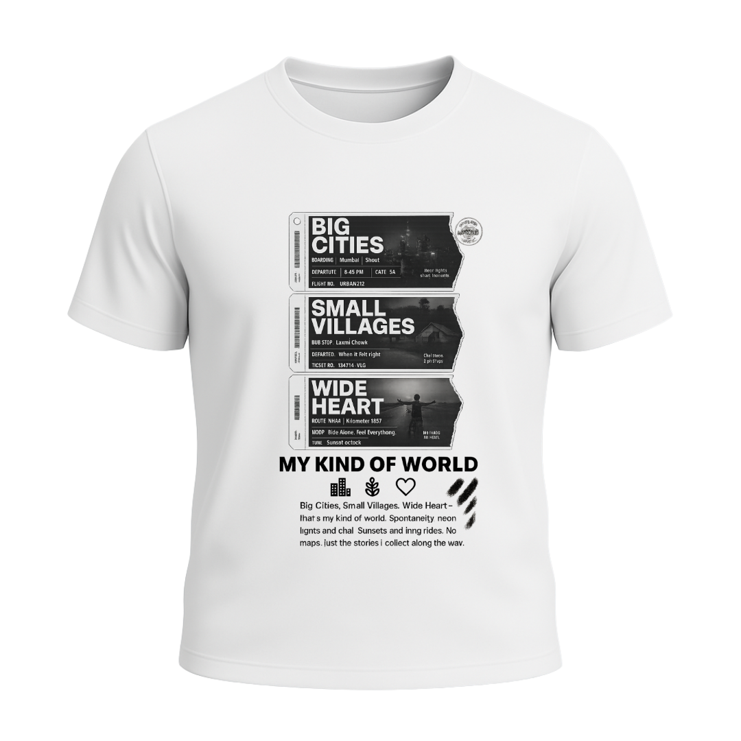 For the wanderer who thrives in chaos and peace alike — this tee blends passports with purpose. Ticket-style visuals celebrate the contrast of towering skylines, quiet corners, and the open-hearted spirit that makes every place feel like home. This isn’t just travel. It’s identity.